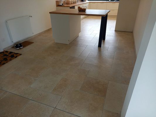 Isolation du sol réalisation d'une chape liquide et carrelage sur toute la surface du rez-de-chaussée